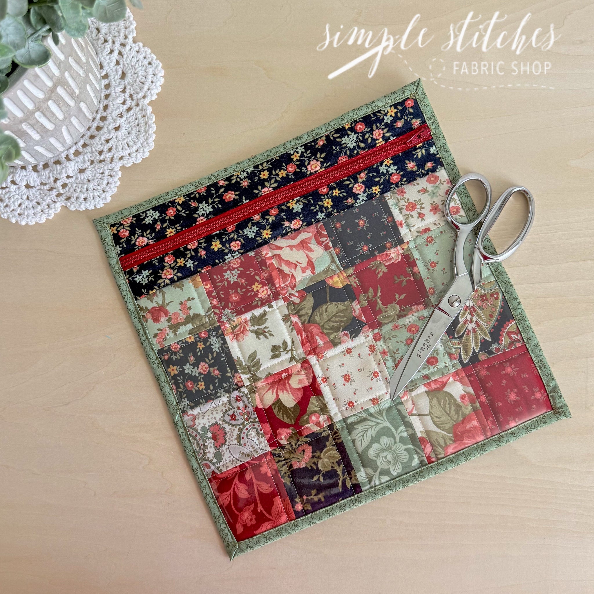 Keep your projects organized and pretty with the Clearly Charming Pouch! This delightful pattern features a clear vinyl front—so you can easily see what’s inside—paired with sweet patchwork details and a zippered top. Perfect for carrying cross stitch, handwork, sewing notions, or even gifting a handmade surprise!
