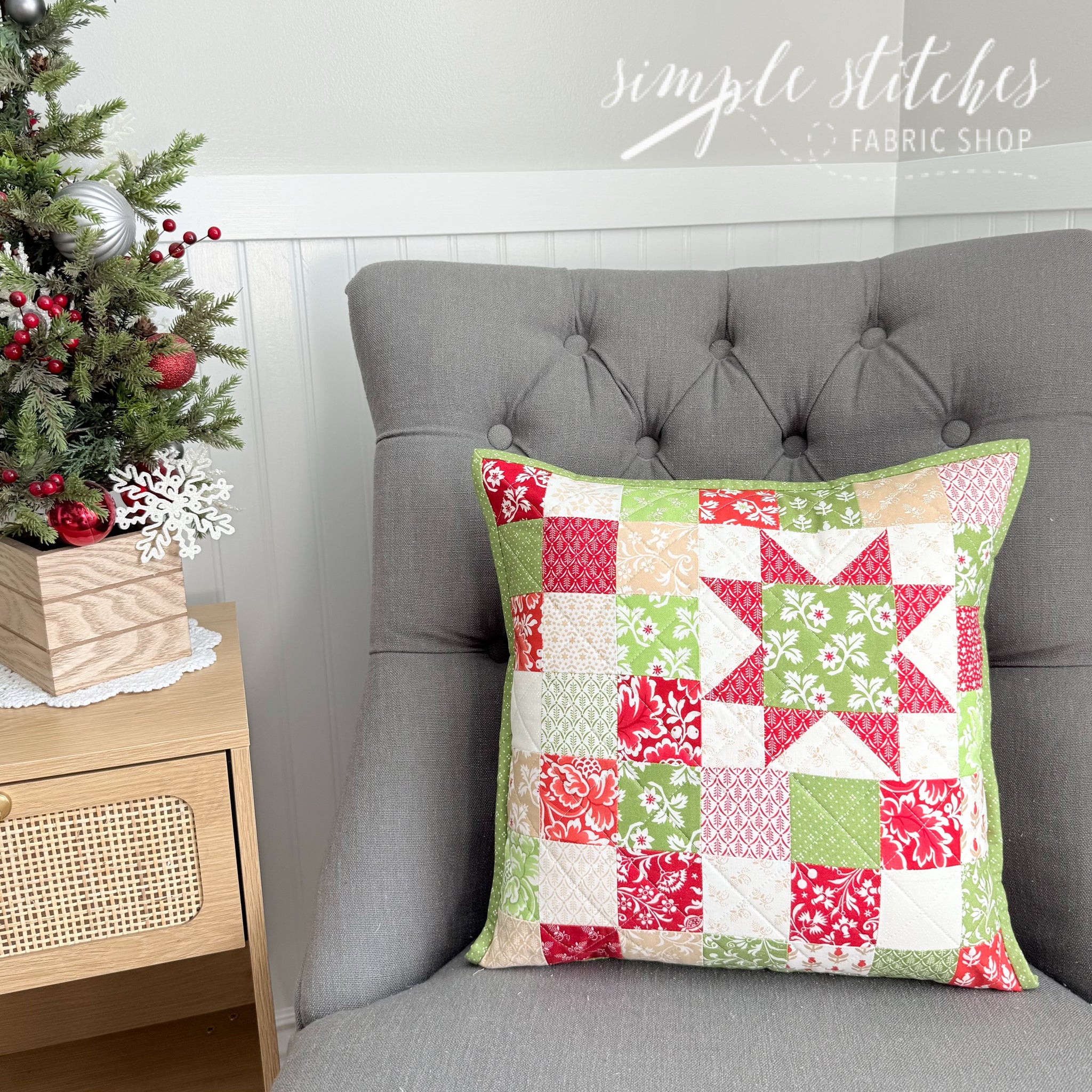 A simple and perfect pillow. Beginner friendly and such a quick and fun project. Easily make these for all of your friends for Christmas this year! Pillow finishes at 14" x 14"