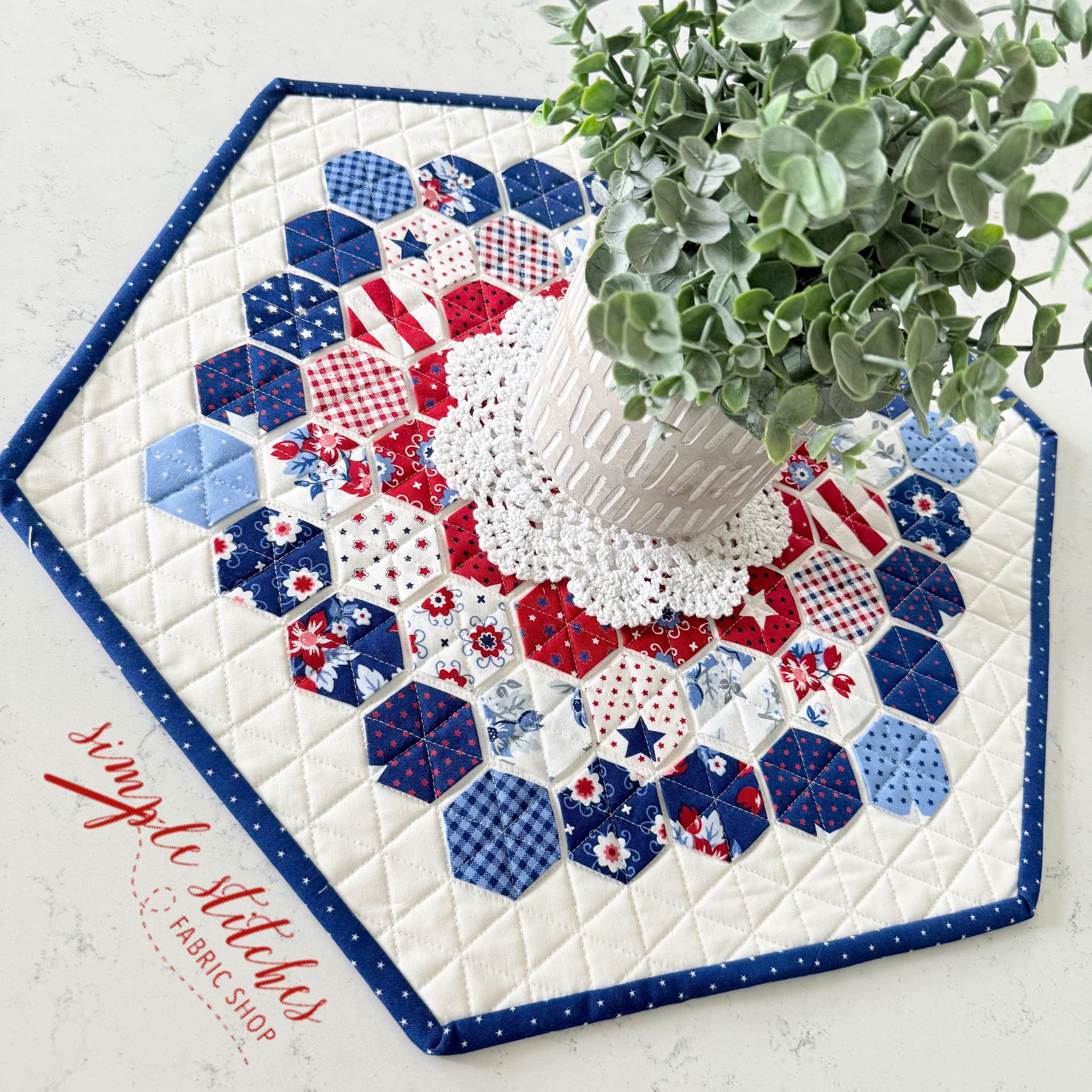 This Hexie Topper is the perfect addition to your summer home decor. The topper finishes at 20”x 20”